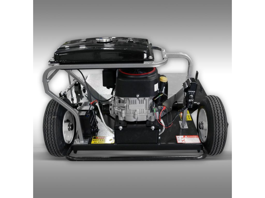 Косильный агрегат соединяется с буксирным транспортным средством с помощью простой муфты с шаровой головкой. Высоту скашивания можно легко регулировать. Четырехтактный бензиновый двигатель приводит в движение косильный агрегат через клиновый ремень.