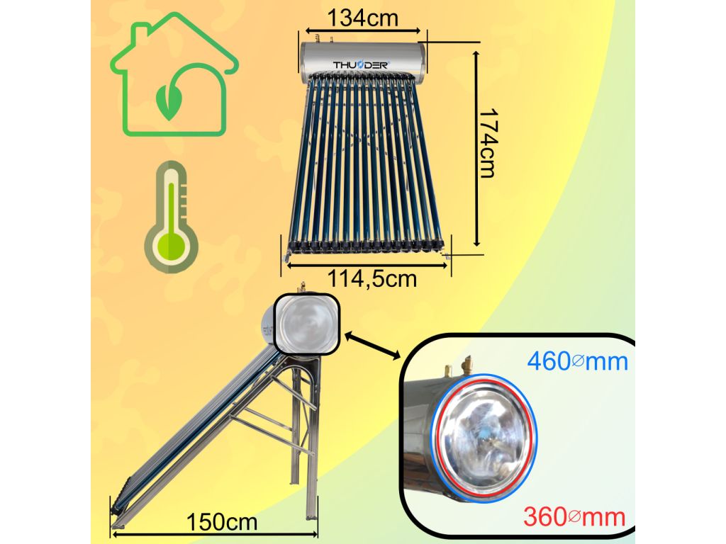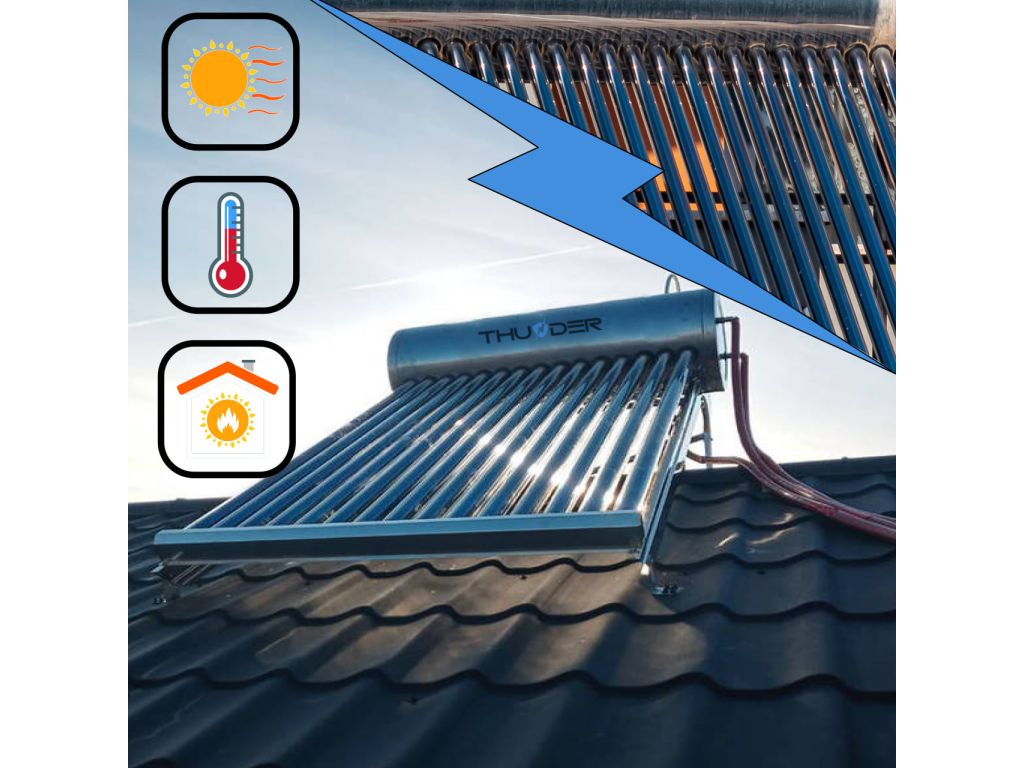 Солнечный коллектор THUNDER KS-150L - использует солнечную энергию для нагрева воды, помогая уменьшить расходы на электроэнергию и выбросы вредных газов в атмосферу. Эта инвестиция предлагает многолетние преимущества. Он состоит из вакуумных труб, расположенных на крыше или на земле, которые эффективно собирают солнечную энергию и передают ее в резервуар для воды. И даже если одна трубка повредится, система продолжит работать. Сразу подогретая вода может быть использована для санитарных нужд или отопления.