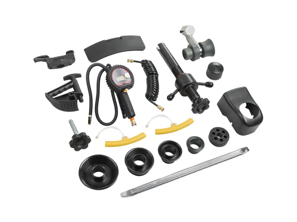 Для облегчения работы с большими и тяжелыми колесами станок оснащен пневматическим подъемником, поднимающим колесо на нужную высоту с помощью ножной педали. Для работы с низкопрофильными и RunFlat шинами используется вспомогательный рычаг, оснащенный 2 роликами и третьей рукой. Такой шиномонтажный станок полуавтомат будет удачным выбором для небольших и средних шиномонтажных мастерских или как вспомогательное оборудование для крупных автосервисов.