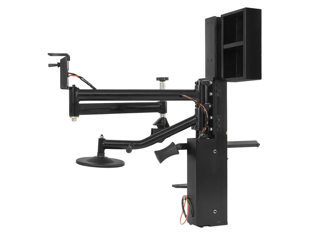 - Гибкое "копытце" (как "третья рука") – фиксирует борт шины под обедом диска во время монтажа, вращаясь вместе с колесом. Регулируется по высоте для разных типов шин.