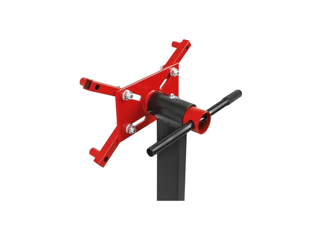 Поворотная на 360° головка позволяет установить двигатель в нужном положении и обеспечивает удобный доступ со всех сторон. Регулируемые на 0-460 мм фиксаторы можно адаптировать под разные типы блоков двигателя. Вращение двигателя производится с помощью рычага. Прочная стальная рама и широкие поперечные опоры обеспечивают устойчивость стенда, а 4 колеса (2 фиксированных, 2 поворотных) позволяют легко перемещать его по рабочему помещению. Этот стенд для двигателя обеспечивает стабильное положение механизмов, что способствует точности работы.