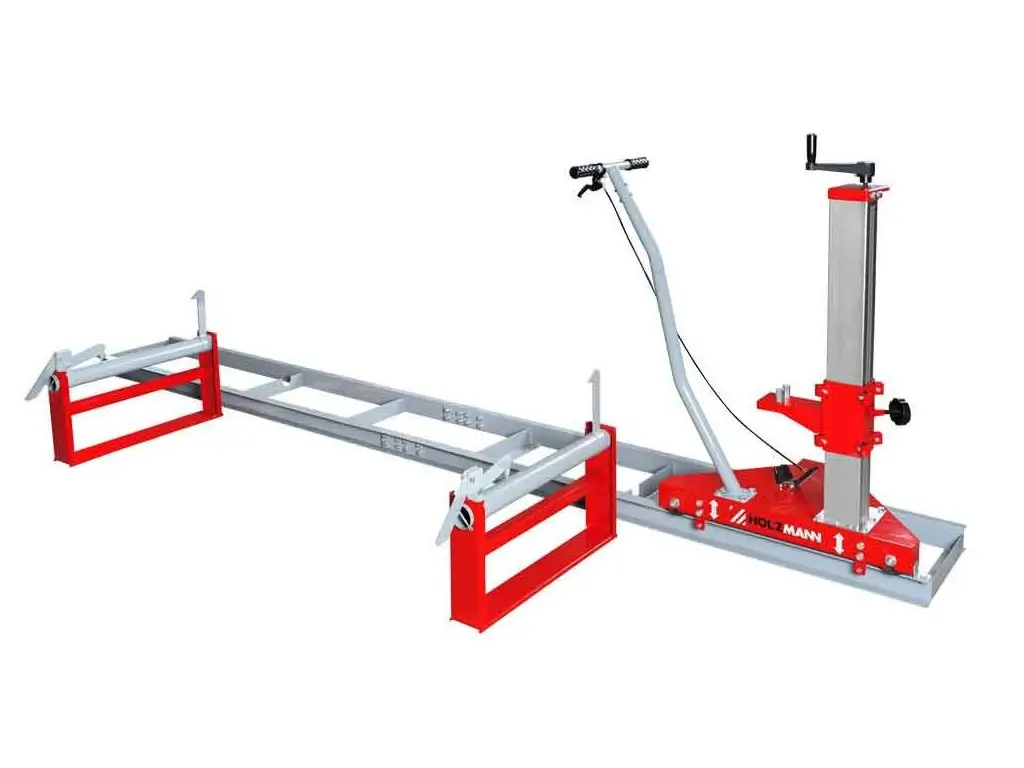 Пилорамная приставка для работы с бензопилой Holzmann MOBAS2 позволяет переделывать стволы деревьев в доски.