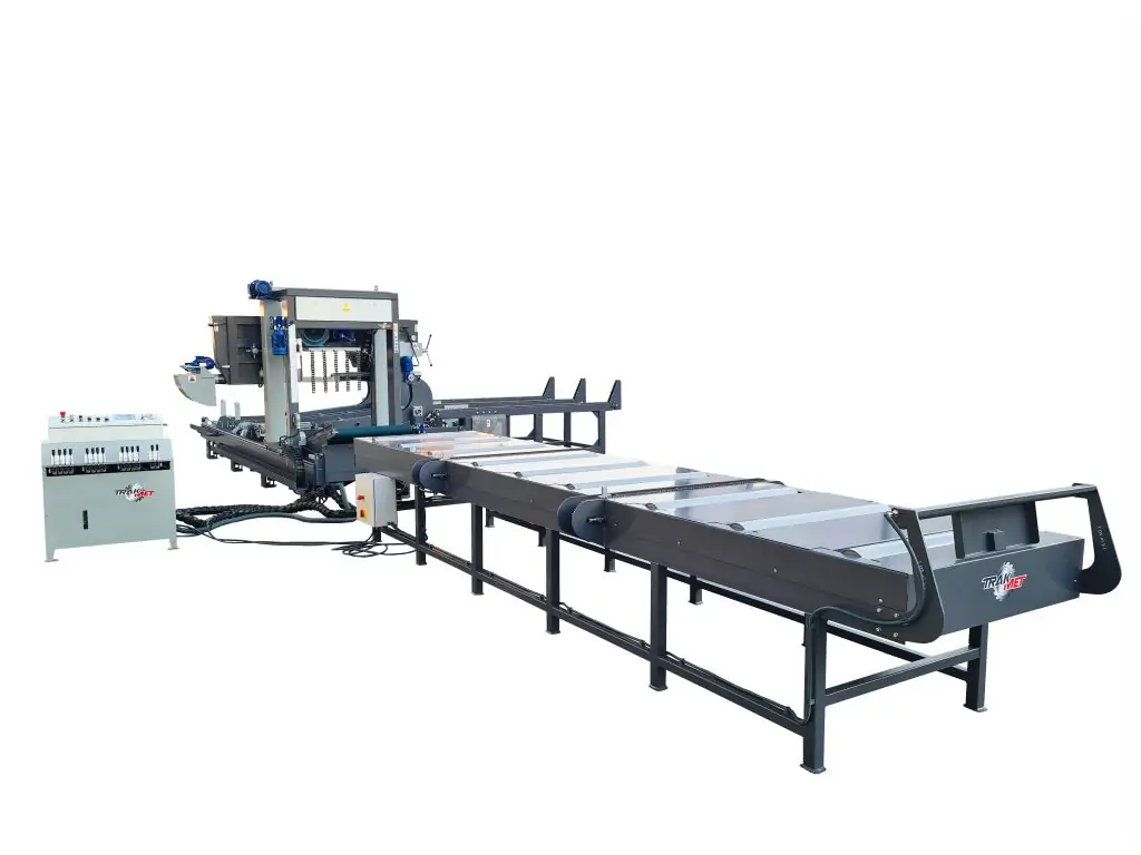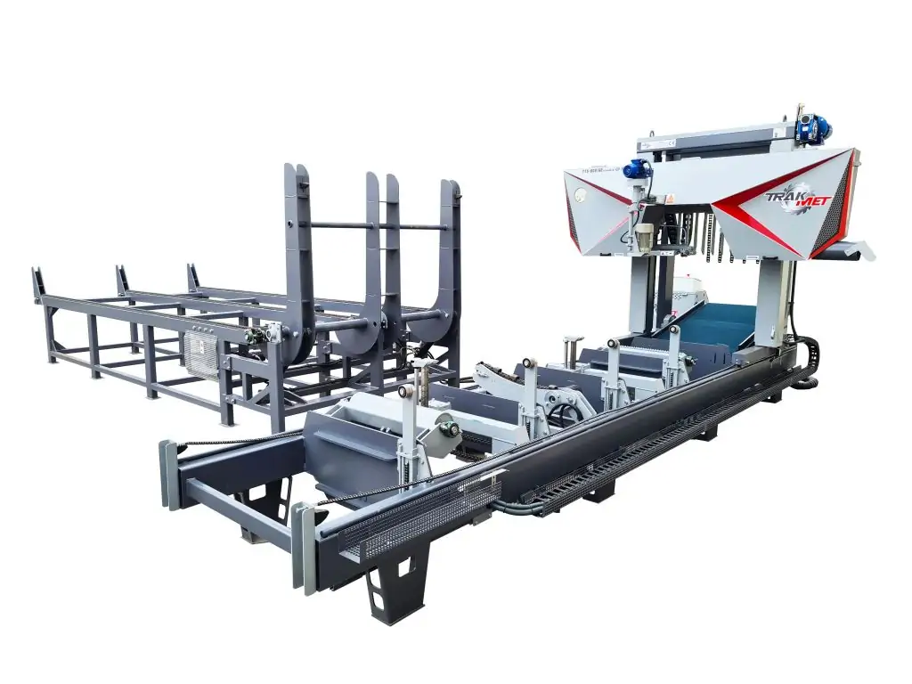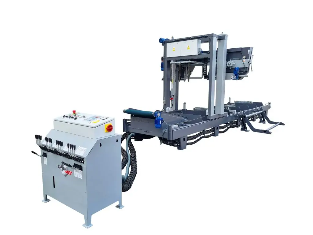 Ленточная пилорама Trak-Met TTS-800/60 - это современный агрегат, отличающийся чрезвычайно высокой производительностью и точностью распиловки. Одним из ключевых преимуществ является использование приводных шкивов диаметром 800 мм, которые приводят режущую ленту шириной 60 мм. Лента этого типа не требует развальцовки, а процесс правки пилы перед распиловкой осуществляется с помощью классических инструментов для точения.