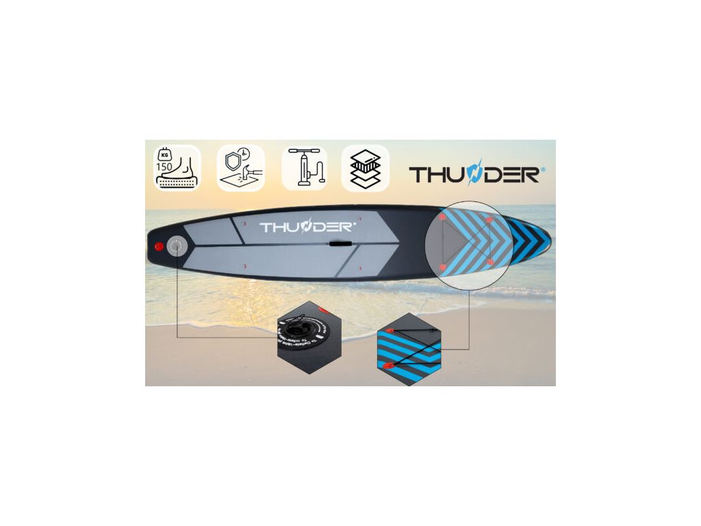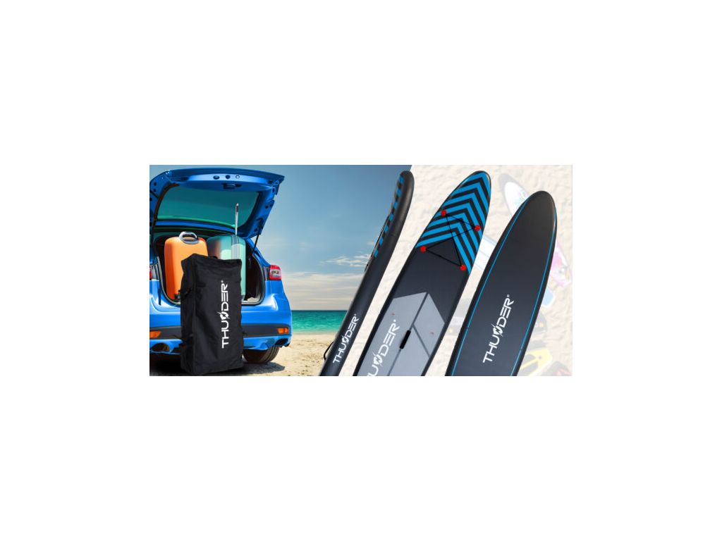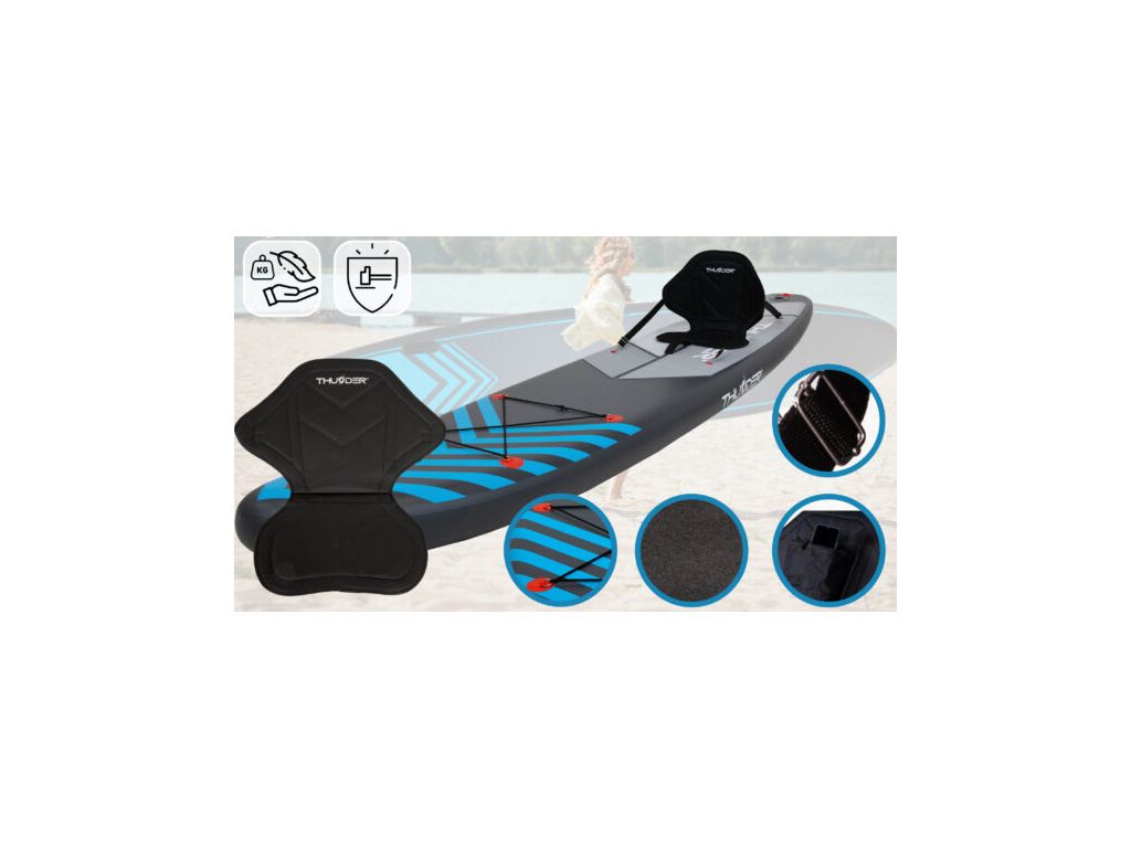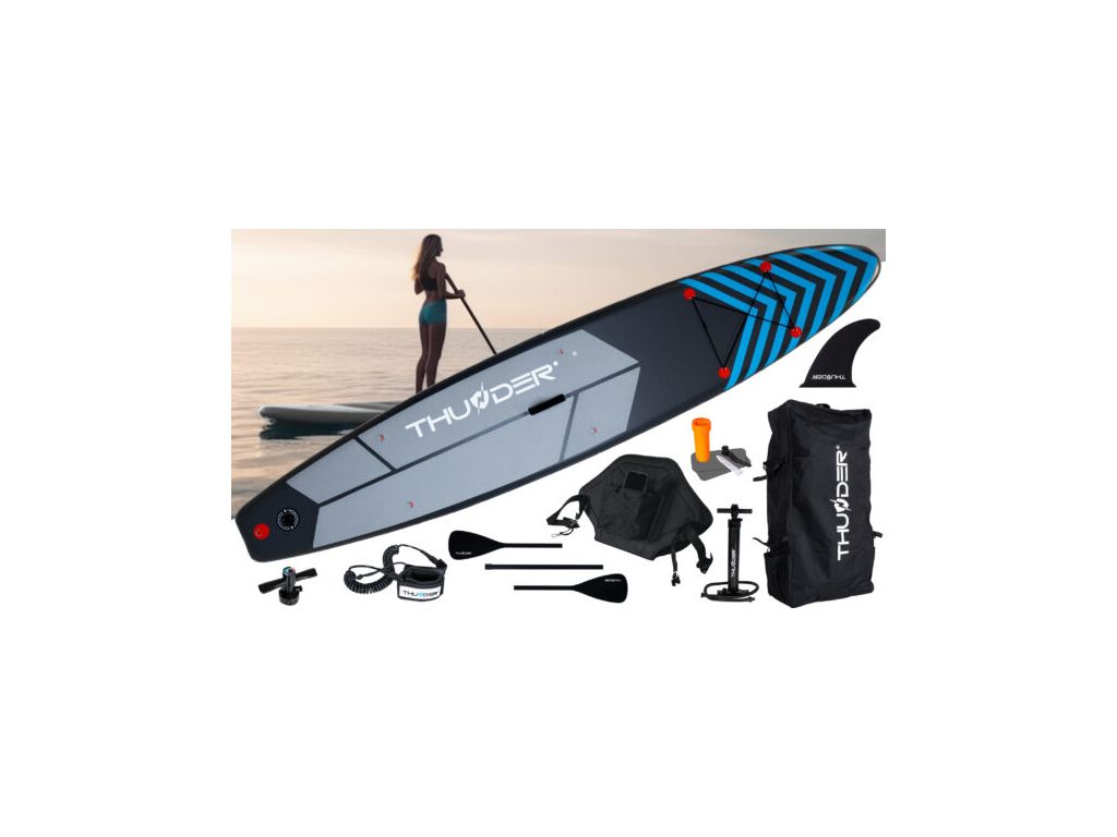 Набор аксессуаров: Доска с двусторонним насосом, рюкзаком, стрипом безопасности, ремонтным комплектом.
