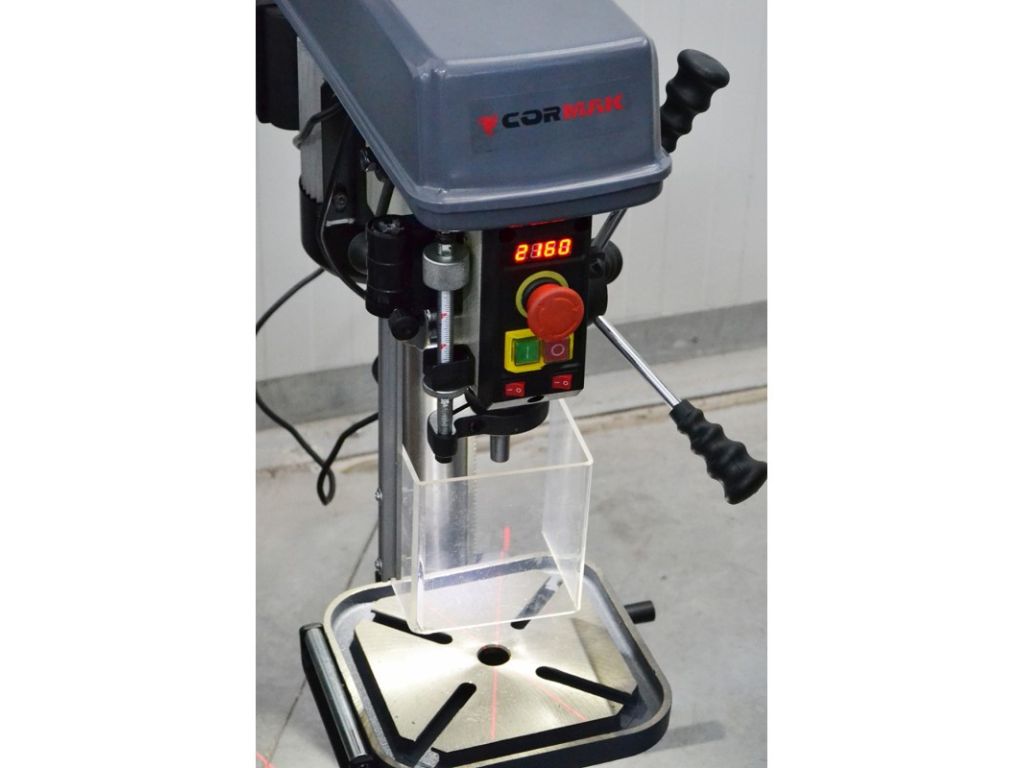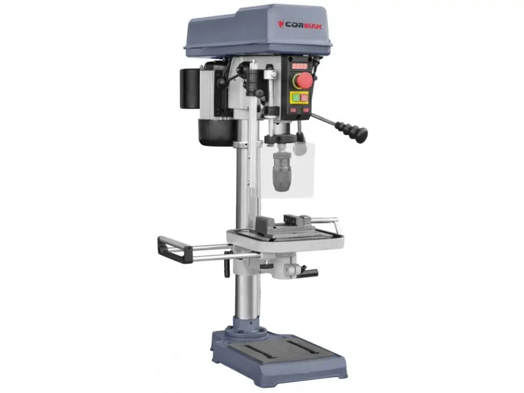 Сверлильный станок Cormak Z7016 Vario производит сверление в металлических деталях глухих и сквозных отверстий диаметром до 16 мм. Двигатель мощностью 700 Вт (230 В) и плавная регулировка скорости вращения шпинделя от 350 до 2700 об/мин обеспечивают качественную обработку всех видов металла. Текущая скорость отображается на монохромном цифровом дисплее. Для контроля рабочего процесса станок оборудован индикатором глубины сверления.