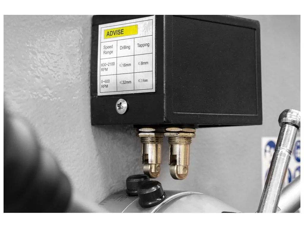Регулировка скорости является важной функцией в сверлильном станке, ведь под каждый материал и диаметр сверления нужно подбирать соответствующую скорость, чем твердее материал тем меньше скорость и чем мягче тем большую скорость можно устанавливать. Именно данная модель оборудована плавной регулировкой с помощью частотного преобразователя и ременной передачи, что позволяет достаточно точно подобрать соответствующие обороты шпинделя. Правильно выбранная скорость предотвращает преждевременное затупление сверла, его перегрев или даже полное разрушение. Неправильно подобранная скорость тоже оказывает негативное влияние на материал, может произойти перегрев, который может привести к ослаблению материала или даже к возгоранию или плавлению. Регулировка скорости позволяет с максимальной эффективностью реализовать потенциал мощности двигателя.