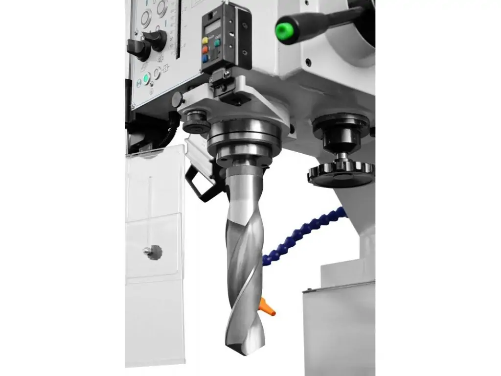 Регулировка скорости является важной функцией в сверлильном станке, ведь под каждый материал и диаметр сверления нужно подбирать соответствующую скорость, чем твердее материал тем меньше скорость и чем мягче тем большую скорость можно устанавливать. Данная модель оборудована редукторной передачей и частотным преобразователем, позволяющим плавно регулировать скорость. Правильно выбранная скорость предотвращает преждевременное затупление сверла, его перегрев или даже полное разрушение. Неправильно подобранная скорость тоже оказывает негативное влияние на материал, может произойти перегрев, который может привести к ослаблению материала или даже к возгоранию или плавлению. Регулировка скорости позволяет с максимальной эффективностью реализовать потенциал мощности двигателя.