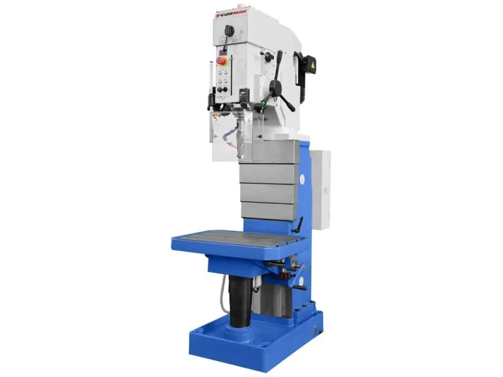 Станок модели CORMAK Z50F VARIO является вертикально-сверлильным, он служит для обработки деталей малых габаритов и веса. Данная модель является напольным вариантом, дающим увеличенный ход шпинделя, что позволяет делать более глубокие отверстия. Высокая конструкция также имеет увеличенный ход по вертикали, что позволяет размещать детали больших размеров. С помощью данного станка можно выполнять сверление, рассверливание, зенкерование, расточка отверстий, разворачивание, зенкивание, цековку.