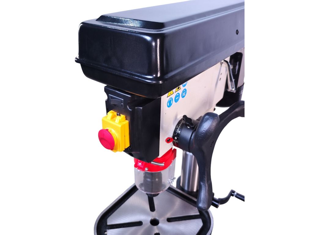 Индукционный двигатель мощностью 600 Вт имеет 12 скоростей вращения шпинделя в диапазоне от 180 до 2740 об/мин. Максимальная глубина сверления – 80 мм, диаметр отверстия – до 20 мм. Основание, стол и сверлильная голова чугунные, колонна – из прочной стали. Стол регулируется по высоте и углу наклона относительно шпинделя. Для обработки деталей большого размера стол можно снять и использовать в качестве опоры основание. Т-образные пазы на столе и основании позволяют закрепить дополнительное оборудование. Купить станок для сверления металла MAST Metalltechnik M-SV1520S-3 можно в нашем интернет-магазине с доставкой по Украине.