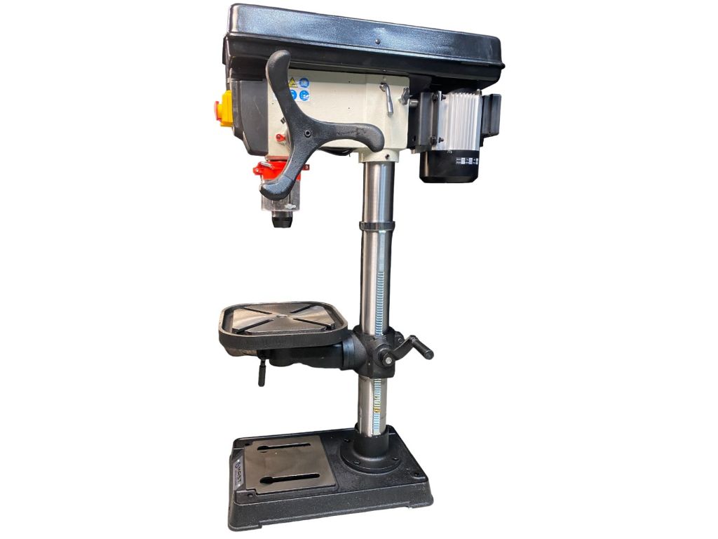 Трехфазный индукционный двигатель мощностью 600 Вт обеспечивает 12 скоростей вращения шпинделя в диапазоне 180-2740 об/мин. Ход шпинделя – 80 мм, способен сверлить отверстия диаметром до 20 мм. Стол можно отрегулировать по высоте и углу наклона относительно шпинделя, а при работе с большими заготовками – снять и в качестве опоры использовать основание. Т-образные пазы на столе и основании позволяют надежно зафиксировать заготовку или дополнительное оборудование. Станок имеет прочную и надежную конструкцию: сверлильная голова, стол и основание изготовлены из чугуна, колонна – из стали. Продажа сверлильных станков в нашем магазине производится с гарантией 12 месяцев, что позволяет быть уверенным в их качестве.