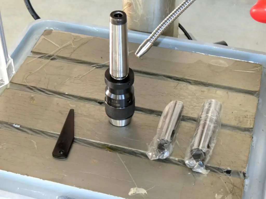 Комплект поставки: сверлильный патрон 16 мм, конусная муфта КМ4/3, КМ3/2, клин для выбивки, зажимное устройство M12