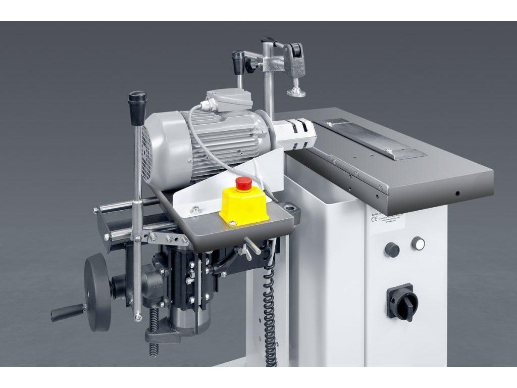 Сверлильно-пазовальный станок Robland KВМ предназначен для выборки пазов и сверления отверстий в деревянных деталях при производстве дверей и окон. Станок имеет прочную стальную конструкцию, сверлильный суппорт и стол изготовлены из чугуна, стол с эксцентриковым прижимом деталей и две рукоятки для перемещения сверлильного узла влево/вправо и вперед/назад. На станке имеются упоры с линейками для выставления размера и глубины паза. Также станок имеет маховик для перемещения сверлильного узла вверх и вниз с точностью 0,1 мм.
