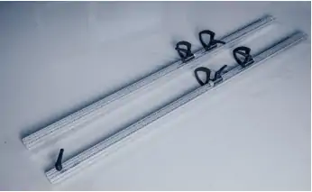 - Две поворотные алюминиевые линейки с четырьмя упорами и миллиметровой шкалой