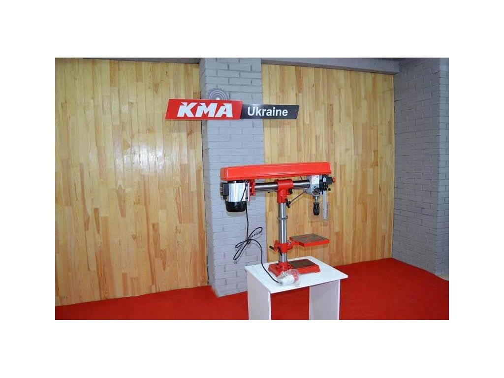Оснащен двигателем мощностью 600 Вт, который позволяет сверлить отверстия диаметром до 16 мм. Скорость вращения шпинделя имеет 5-ступенчатую регулировку в диапазоне 500-2500 об/мин. Ход шпинделя составляет 80 мм. Чугунный рабочий стол имеет возможность наклона под углом до 45° в обе стороны и вращение на 360°. Т-образные пазы позволяют зафиксировать деталь или установить дополнительное оборудование. Особенностью представленного станка является регулировка вылета от 130 до 420 мм. Этот и другие станки для сверления купить с гарантией можно в интернет-магазине KMA.UA.