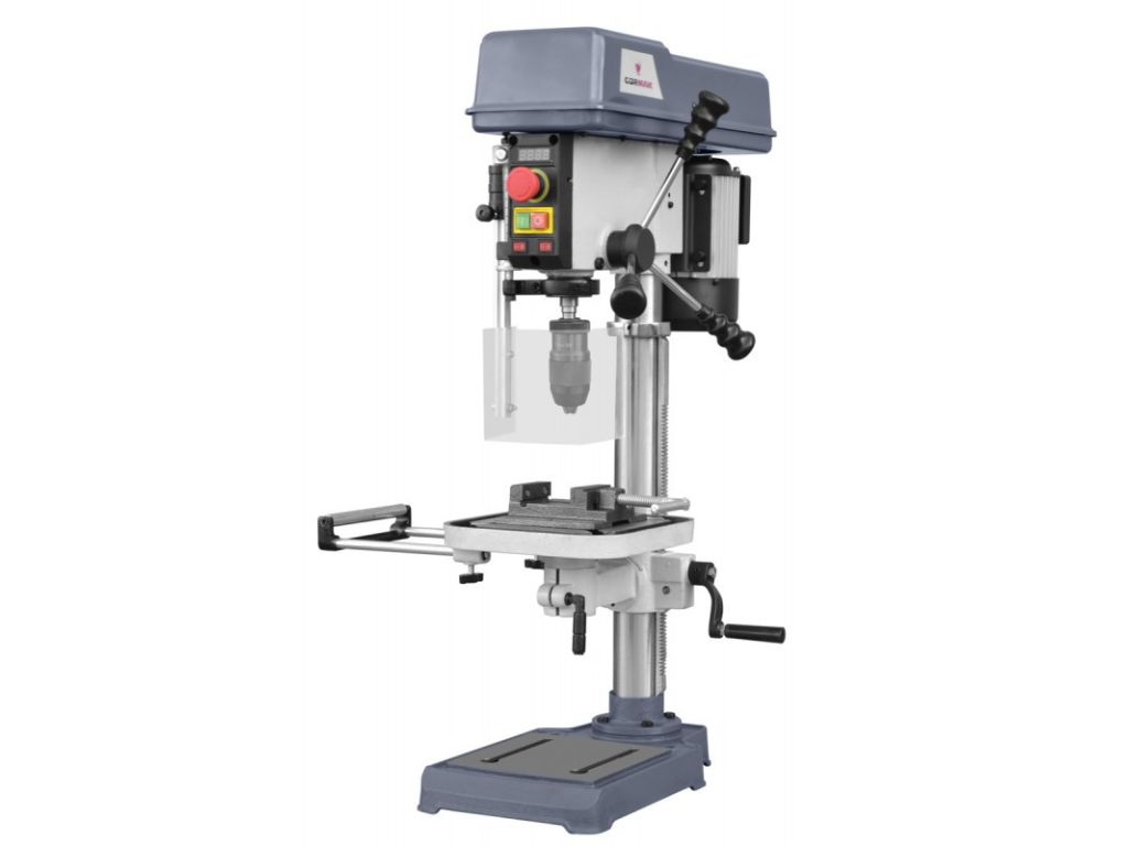 Сверлильный станок Cormak Z7016 Vario производит сверление в металлических деталях глухих и сквозных отверстий диаметром до 16 мм. Двигатель мощностью 700 Вт (230 В) и плавная регулировка скорости вращения шпинделя от 350 до 2700 об/мин обеспечивают качественную обработку всех видов металла. Текущая скорость отображается на монохромном цифровом дисплее. Для контроля рабочего процесса станок оборудован индикатором глубины сверления.