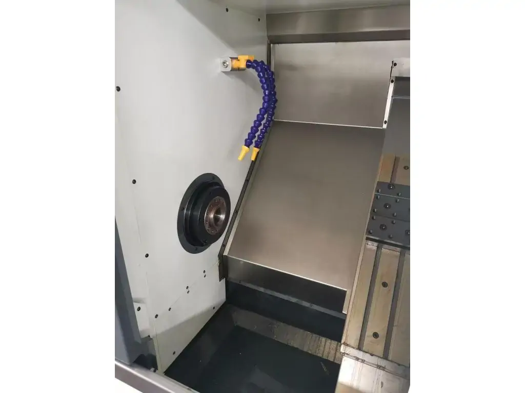 Наклонная станина (45°) снижает вертикальные нагрузки на направляющие, обеспечивает эффективный отвод стружки и лучший доступ к зоне резки. Для максимальной эффективности и удобства работы этот компактный токарный центр с ЧПУ оснащен системой охлаждения СОЖ, трехцветным индикатором состояния, LED-освещением и ящиком для инструментов в корпусе. Для увеличения производительности работы опционально возможна доукомплектация гидравлическим патроном Ø160 мм.