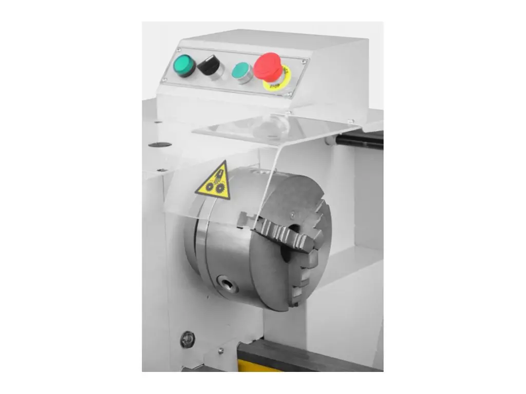 Индукционно закаленная и точно отшлифованная направляющая станины и закаленный шпиндель на прецизионных роликоподшипниках обеспечивают высокое качество обработки. Автоматические поперечная и продольная подачи инструмента сокращают время обработки и повышают производительность станка. Устойчивое и прочное основание обеспечивает стабильность и точность работы. Быстрое и легкое переключение скоростей и подачи с помощью эргономичной панели. В нашем интернет-магазине этот станок токарный купить можно с доставкой и гарантией 12 месяцев.