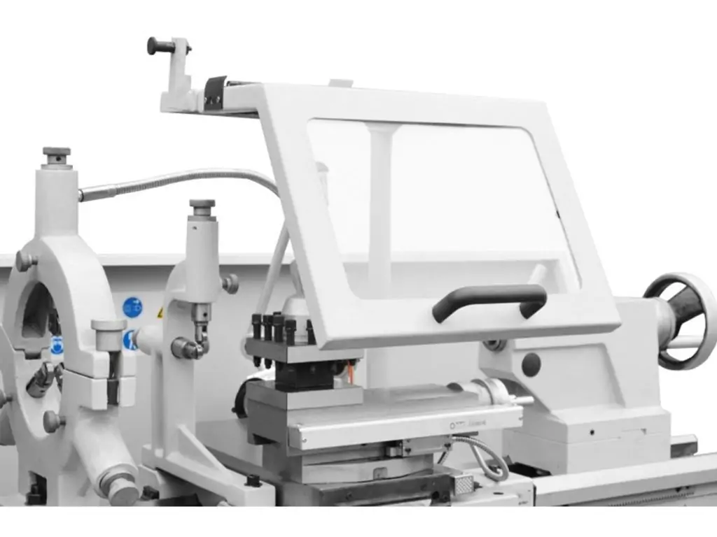 Шпиндель установлен на прецизионных подшипниках, что гарантирует высокую точность вращения. Отверстие шпинделя 52 мм позволяет обрабатывать длинные детали без предварительной нарезки заготовок. Диапазон оборотов 45-1800 об/мин позволяет адаптировать режим обработки под разные материалы и операции. Универсальная коробка подач дает возможность нарезать резьбу без необходимости частой замены шестерен в гитаре. Чугунная станина с закаленными и отшлифованными направляющими, цифровая индикация по 3 осям, система охлаждения СОЖ и система централизованной смазки делают этот токарный станок 1000 мм точным, надежным и безотказным.