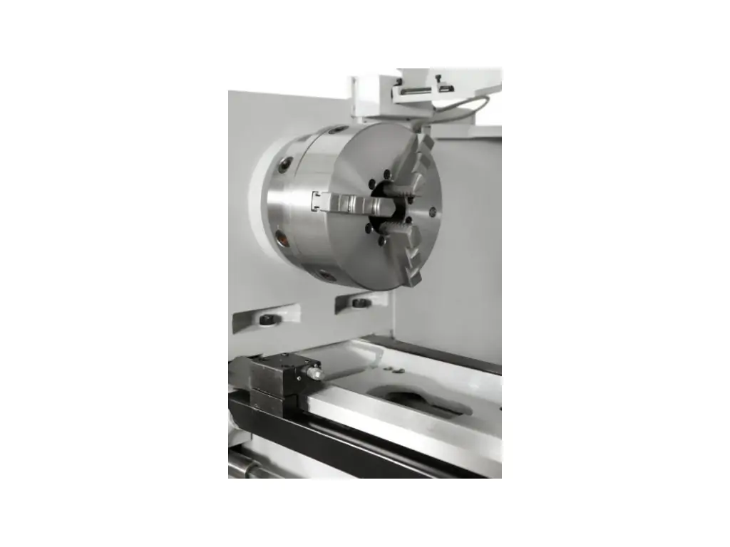 Шпиндель установлен на прецизионных подшипниках и имеет зажим Camlock (D1-8). Асинхронный двигатель мощностью 5,5 кВт и механическая ступенчатая коробка передач с рычажным переключением обеспечивают стабильные обороты без проседаний и высокий крутящий момент на низких скоростях. Универсальная коробка подач позволяет нарезать резьбу без смены шестерен. Массивная конструкция, централизованные точки смазки и встроенная система СОЖ делают этот универсальный токарный станок для цеха точным, надежным и безотказным.