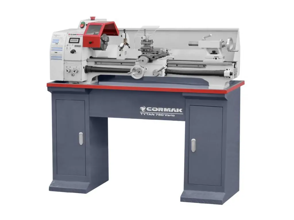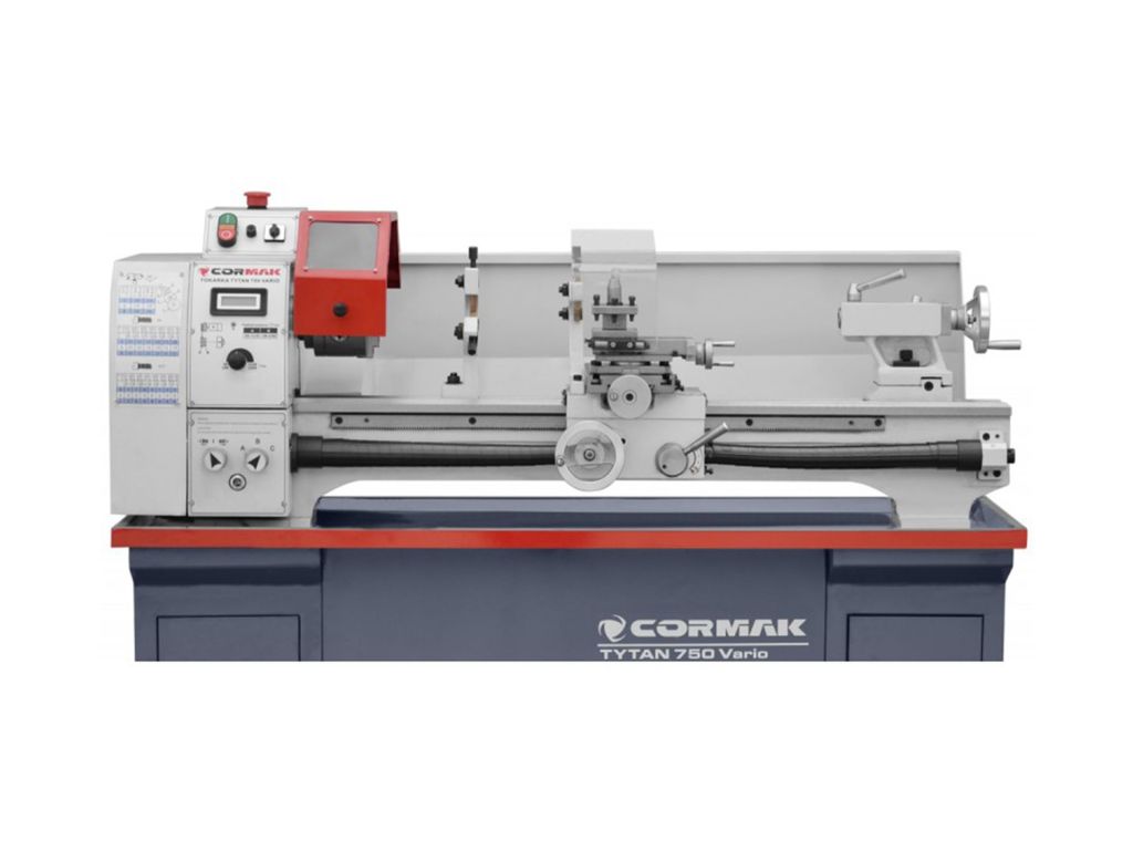 Токарный станок TYTAN 750 Vario от CORMAK - массивный, прочный и точный токарный станок по металлу с ходовым винтом и нижним основанием в комплекте.