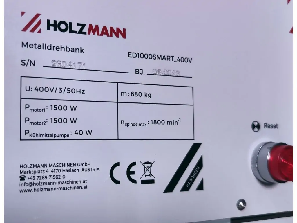 Токарный станок Holzmann ED1000SMART – это полуавтоматическое многофункциональное оборудование для обработки цилиндрических, конических и фасонных металлических деталей, а также нарезки метрической, дюймовой и модульной резьбы. Подходит для заготовок длиной до 1000 мм, диаметром до 326 мм. Трехфазный асинхронный двигатель 1,5 кВт обеспечивает вращение шпинделя в 2 диапазонах – 85-390 об/мин и 390-1800 об/мин. Регулировка скорости происходит с помощью частотного преобразователя.