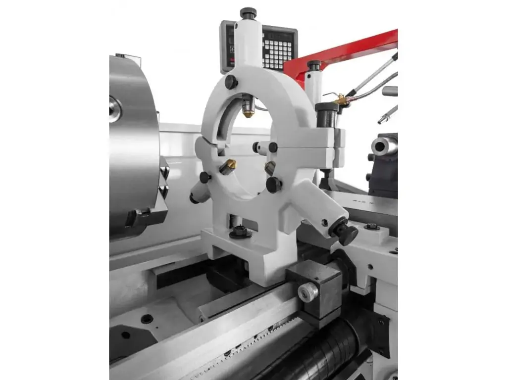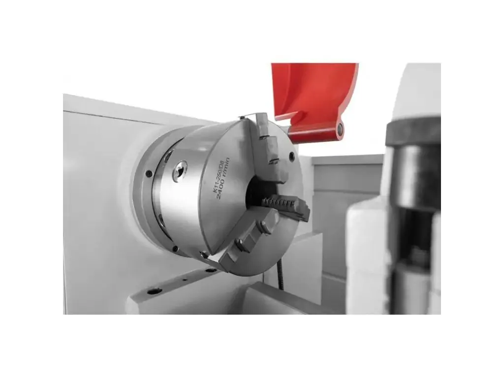 Трехфазный асинхронный двигатель мощностью 5,5 кВт и 12-ступенчатая механическая коробка передач с закаленными и прецизионно отшлифованными шестернями обеспечивают эффективную резку твердых металлов и больших диаметров. Жесткий шпиндель на высокоточных подшипниках с креплением D1-8 CAMLOCK и конусом МК7 обеспечивает надежную фиксацию оснастки и стабильность при тяжелых режимах. Универсальная механическая коробка подач с ходовым винтом, рычажной системой и предохранительной муфтой обеспечивает точный шаг подач, повторяемость размеров и позволяет нарезать резьбу без частой смены шестерен. Благодаря массивной чугунной станине шириной 300 мм и индукционно закаленным, отшлифованным направляющим этот токарный станок для производства сохраняет точность и геометрию в течение долгих лет службы.