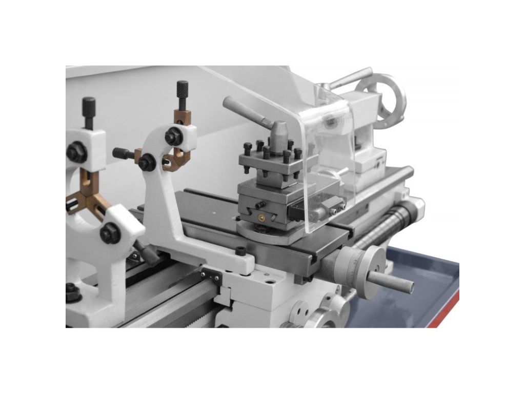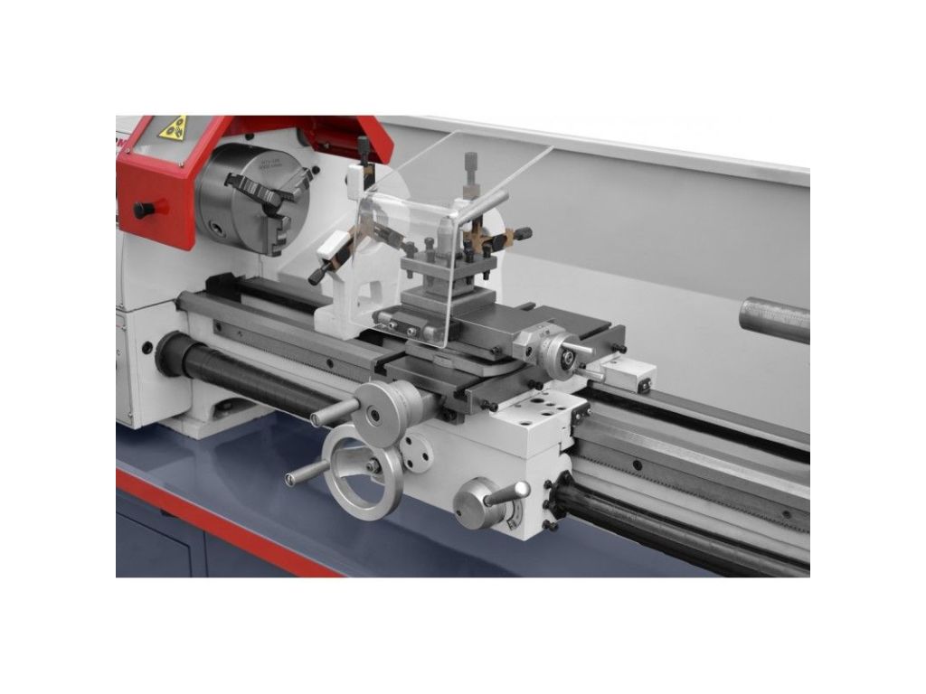 Станок оснащен множеством полезных функций, в том числе: токарная обработка 250/750 мм, 6-ступенчатая регулировка скорости вращения шпинделя, скорость вращения шпинделя устанавливается с помощью потенциометра, возможность нарезания резьбы, станина - направляющие индукционно закалены и отшлифованы, сменные колеса токарного станка изготовлены из металла, поводок винт помещен в специальную крышку - в соответствии с действующими требованиями охраны здоровья и безопасности, стандартами DIN и CE.