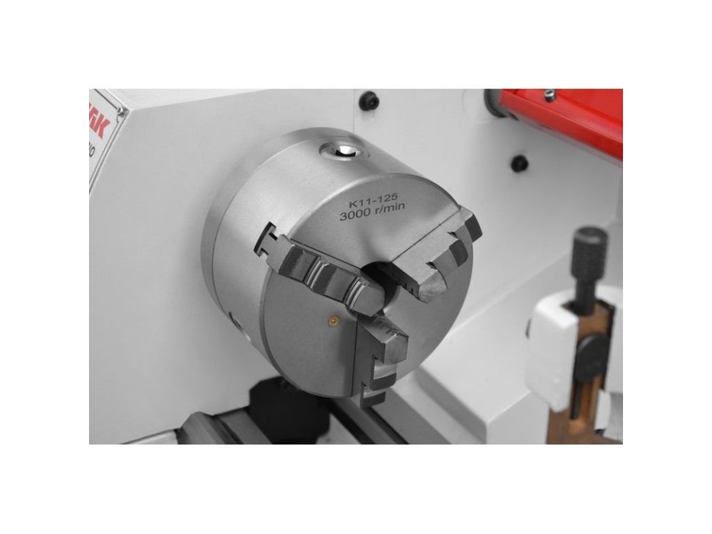 Токарный станок имеет продольную подачу, мощный двигатель 1,1 кВт, два люнета - неподвижный и подвижный, самоцентрирующийся 3-х кулачковый токарный патрон на 125 мм, в комплект входит практичная база с двумя шкафами, например для токарных инструментов, современная конструкция и дизайн, к машине прилагается руководство пользователя на польском языке и декларация соответствия ЕС (CE).