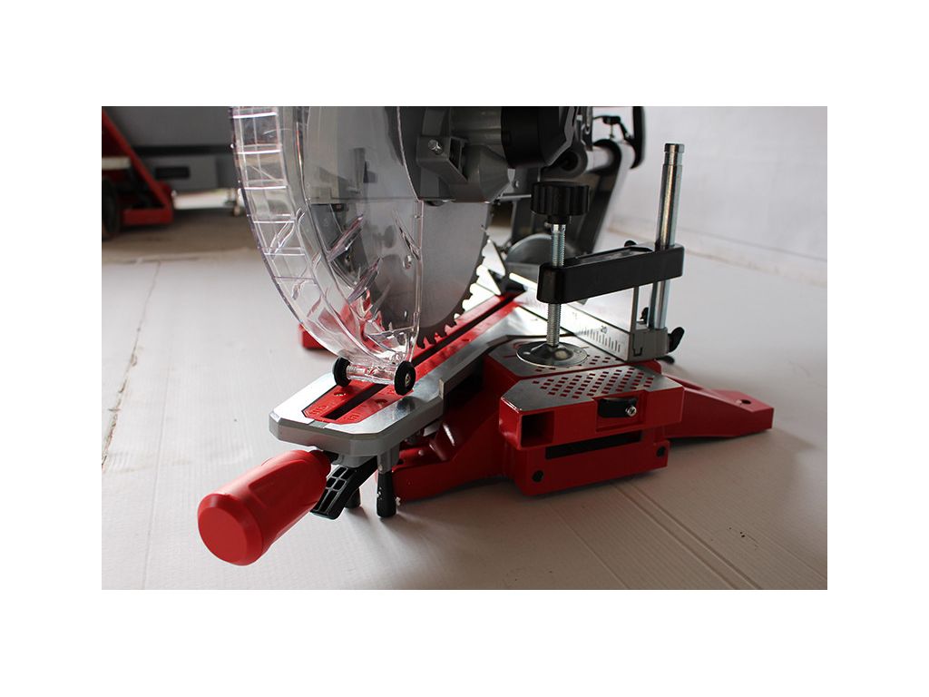 Торцовка оснащена системой протяжки, которая состоит из двух параллельных реек, и существует для распиливания заготовок большой ширины. Пильный диск может свободно перемещаться вдоль направляющих, чему способствуют шарикоподшипники длительного срока эксплуатации.