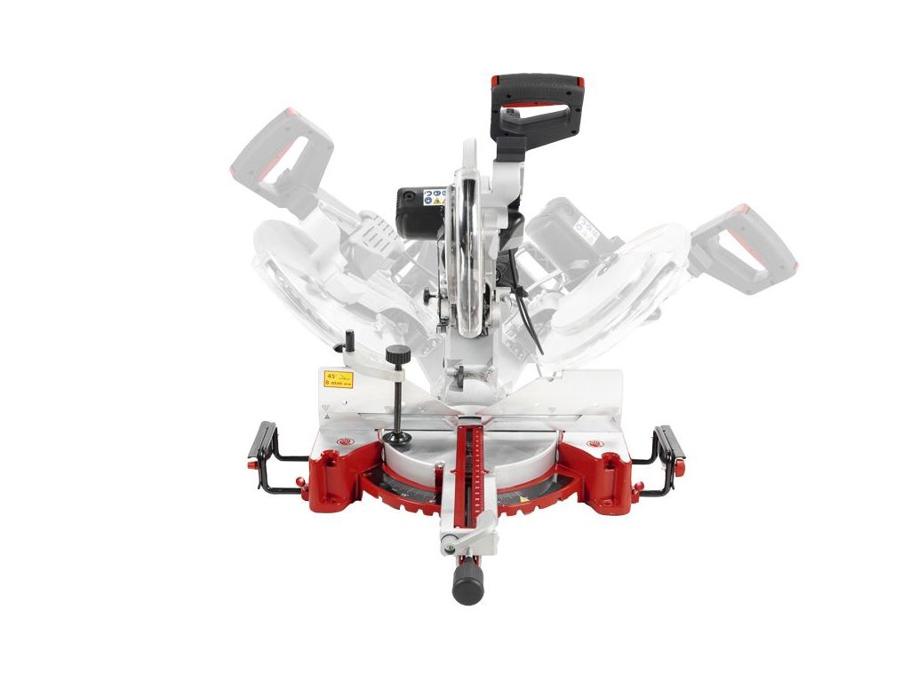 Наклон пильного узла на 45° и поворот рабочего стола на 45° вправо и влево позволяют качественно выполнять задачи разной сложности. В стандартную комплектацию входит система протяжки, благодаря которой можно удобно работать с широкими заготовками. Для максимальной точности позиционирования заготовки есть лазерный указатель линии реза. Эта торцовочная пила с протяжкой будет выгодным приобретением как для самостоятельных мастеров, так и для деревообрабатывающих мастерских.