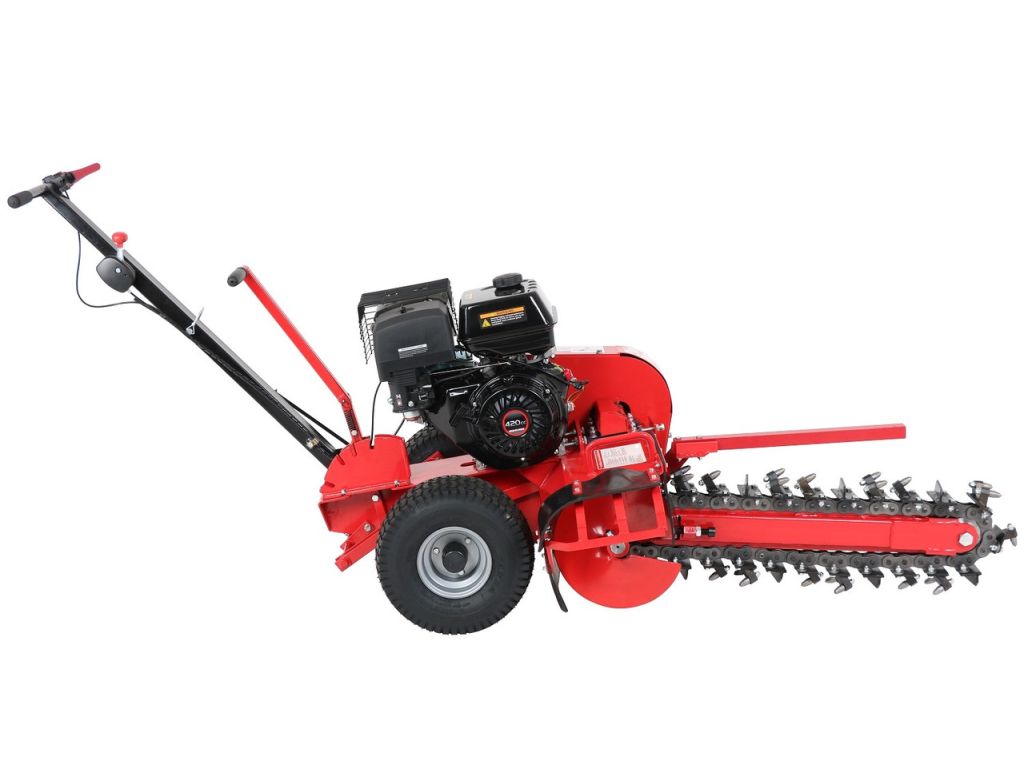 Оснащен надежным бензиновым двигателем Loncin мощностью 9 кВт. Цепь с 27 зубьями с твердосплавными наконечниками обеспечивает эффективную работу на различных грунтах, а 2 пневматических колеса гарантируют отличную проходимость траншеекопателя. На нашем сайте вы можете выгодно заказать этот траншеекопатель цена на который доступна за счет прямых поставок от производителя.