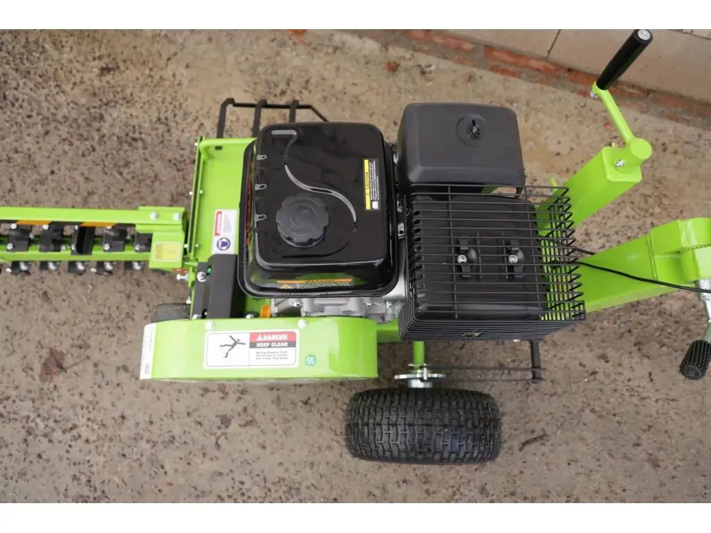- Специальный шнек отбрасывает землю на одну сторону траншеи, что облегчает ее дальнейшее засыпание и предотвращает загрязнение газонов