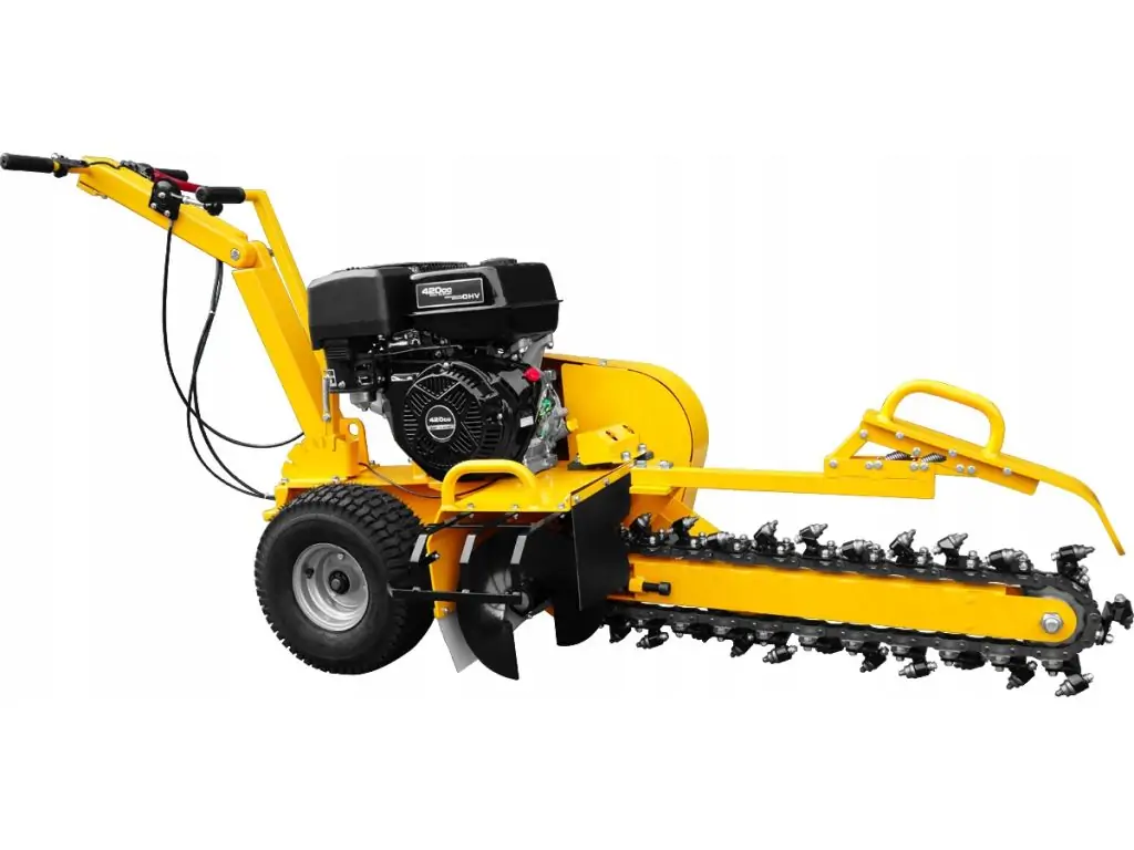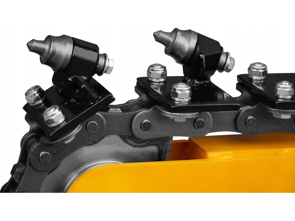 Такая техника оснащена цепью с закрепленными на ней лезвиями. Копание осуществляется путем вращения цепи, которое запускается двигателем.