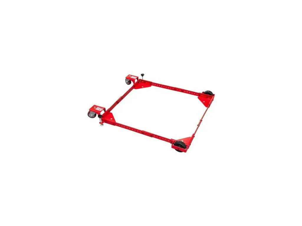 Платформа оснащена 2 колесами Ø 75 мм для маневрирования по рабочей зоне и 2 колесами Ø 100 мм для стабильности при нагрузке. Рулевые колеса оборудованы стопорами для фиксации платформы на месте. Конструкция изготовлена из качественного металла и имеет порошковое покрытие для защиты от коррозии. Эта подставка для перемещения станков чрезвычайно простая в эксплуатации, поэтому управление может осуществляться одним человеком.