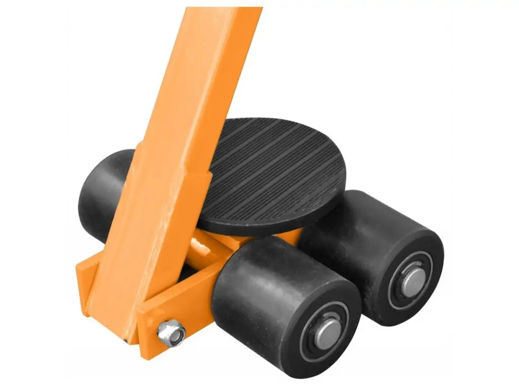 Платформа обеспечивает равномерное распределение нагрузки и устойчивость груза, а прорезиненные опоры минимизируют риск его повреждения. Шасси оснащено прочными полиуретановыми роликами с плавным и тихим движением, которые имеют отличное сцепление и амортизацию и не повреждают поверхность. Для управления движением используется эргономичный рычаг длиной 900 мм. Радиус поворота 90° позволяет легко маневрировать в условиях ограниченного пространства. В сложенном виде комплект компактный, его можно перевозить в автомобиле и удобно хранить. Благодаря прочной конструкции из качественных материалов транспортировочный набор WL3+WF3 чрезвычайно износоустойчивый и имеет длительный срок службы.
