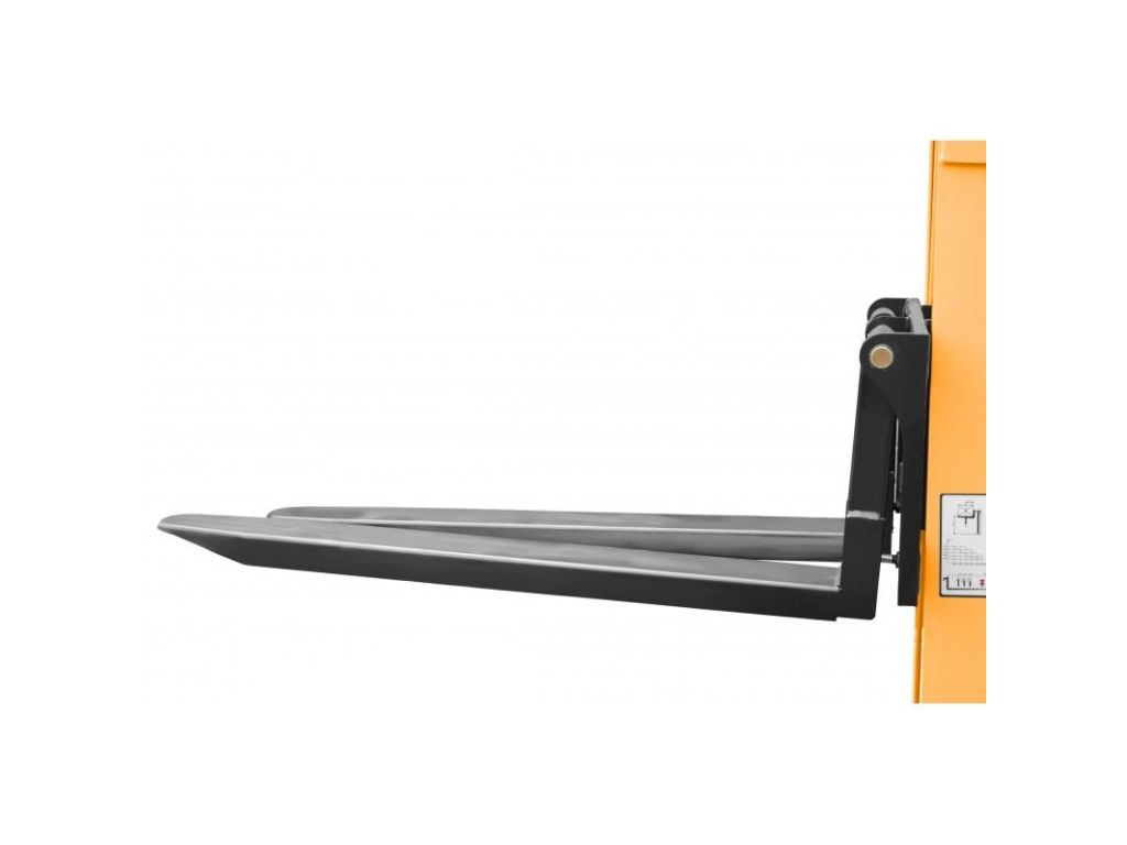 Регулировка ширины вил позволяет работать с разными типами паллет, поднимать нестандартные грузы и точно выставлять центр нагрузки. Это делает штабелер более универсальным.