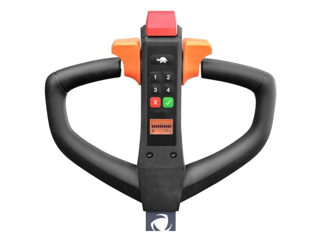 Рокла Cormak Q15E предназначена для перемещения груза весом до 1500 кг. Оснащена электроприводом и электроподъемом. Компактные размеры и небольшой вес позволяют эффективно использовать эту модель для перевозки товара по узким коридорам, на парковках и в подобных местах. Плавное управление скоростью и эргономичная ручка с кнопкой медленного хода делают управление тележкой очень удобным. Электрический контроллер с кодом доступа предотвращает использование оборудования посторонними лицами.