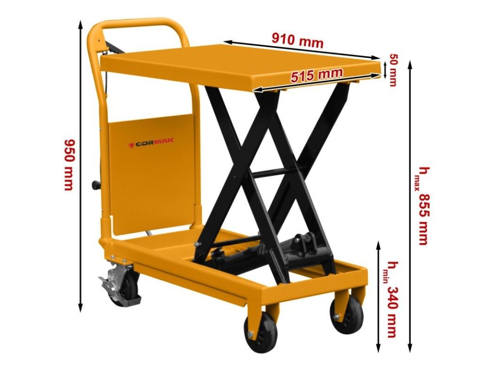 Ножничная тележка Cormak TA50 – используется в автомастерских при разборке двигателя, коробки или другого оборудования. Также и в других отраслях хозяйства, таких как склады, фабрики, строительные площадки.