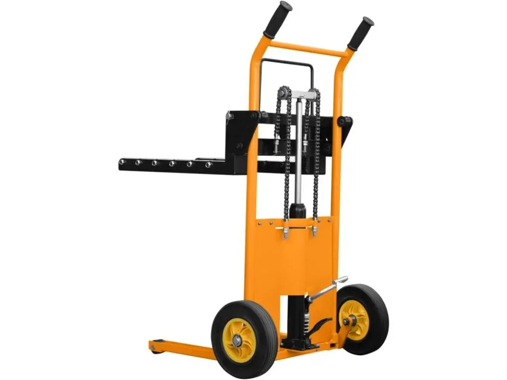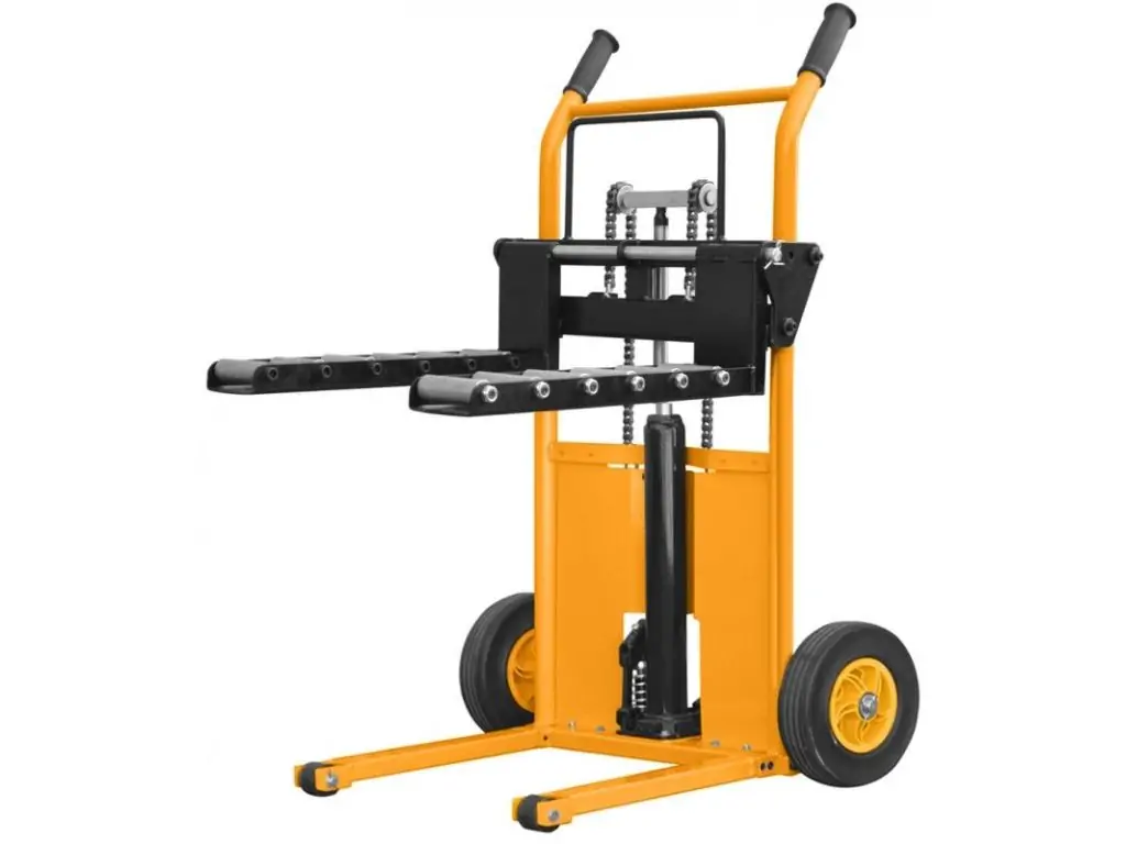 - Плавный подъем и опускание вил в диапазоне 55-900 мм с помощью ножного гидравлического насоса