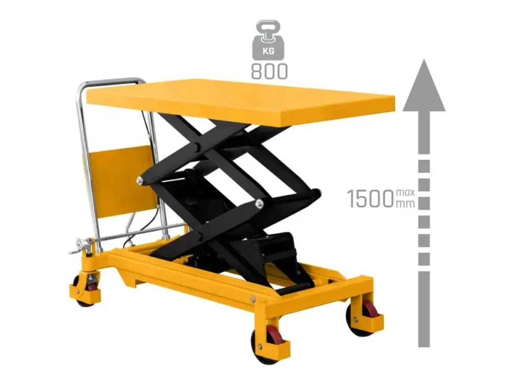 - Грузоподъемность и высота подъема: с грузоподъемностью 800 кг и высотой подъема 1500 мм является универсальным и надежным устройством, используемым в различных отраслях промышленности. Он облегчает перемещение тяжелых грузов и обеспечивает доступ к труднодоступным местам.