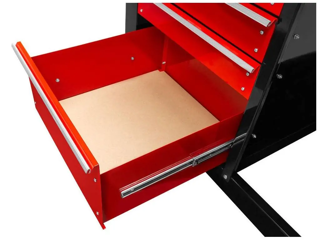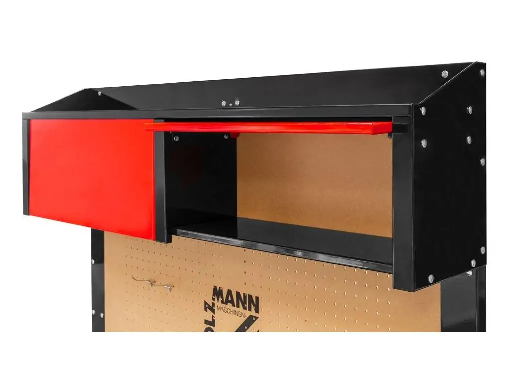 2 больших ящика над столешницей и 4 вместительных ящика на шариковых подшипниках с левой стороны под столешницей обеспечивают удобное хранение инструмента и аксессуаров. Перфорированная задняя стенка позволяет разместить до 20 крючков для закрепления необходимого для работы оборудования. Этот и другие верстаки столы для мастерских высокого качества можно заказать на KMA.UA.