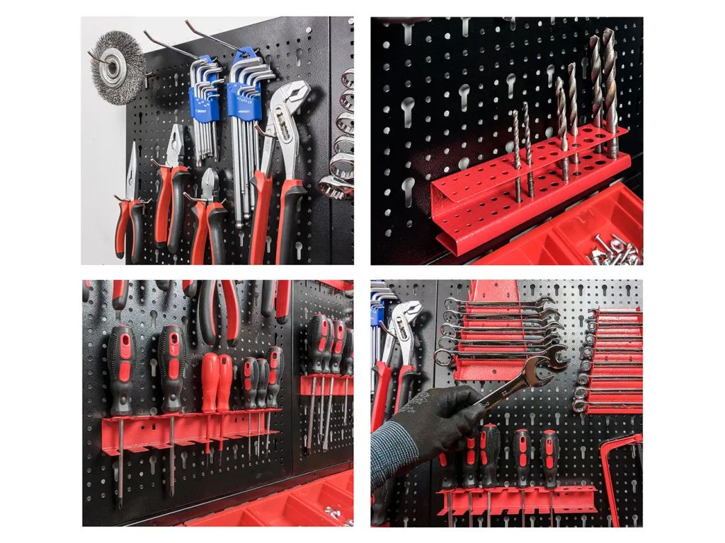 Самые важные преимущества – это экономия места и удобная организация рабочего пространства. Благодаря легкому доступу к инструментам и их рациональному размещению работа выполняется быстрее и уменьшается риск травм из-за беспорядка или падения тяжелых предметов.