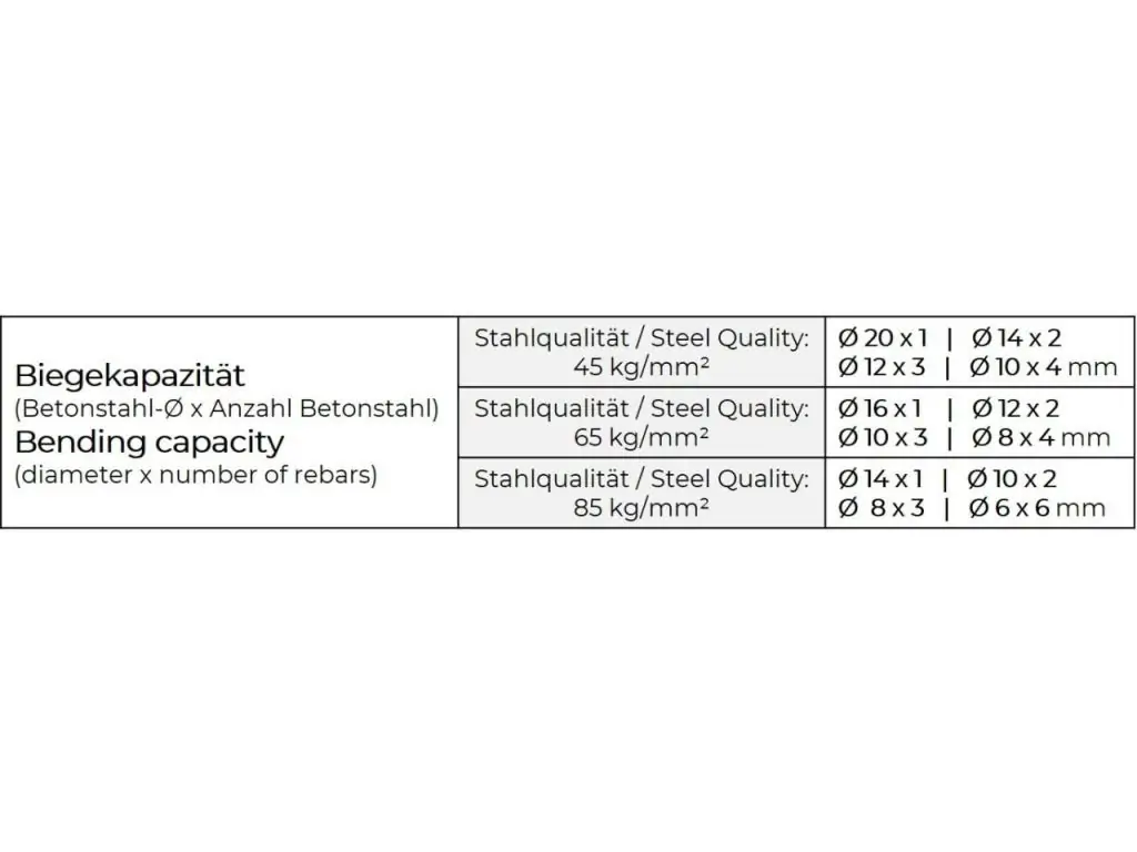 Мощность двигателя 1,5 кВт обеспечивает производительность работы и точную гибку разных видов металла. Конструкция станка изготовлена из высококачественной стали, что гарантирует длительный срок службы. Компактные размеры позволяют удобно и эффективно использовать станок в условиях ограниченного рабочего пространства. В стандартную комплектацию модели входят вставки для гибки арматуры разного диаметра, что значительно расширяет возможности оборудования.