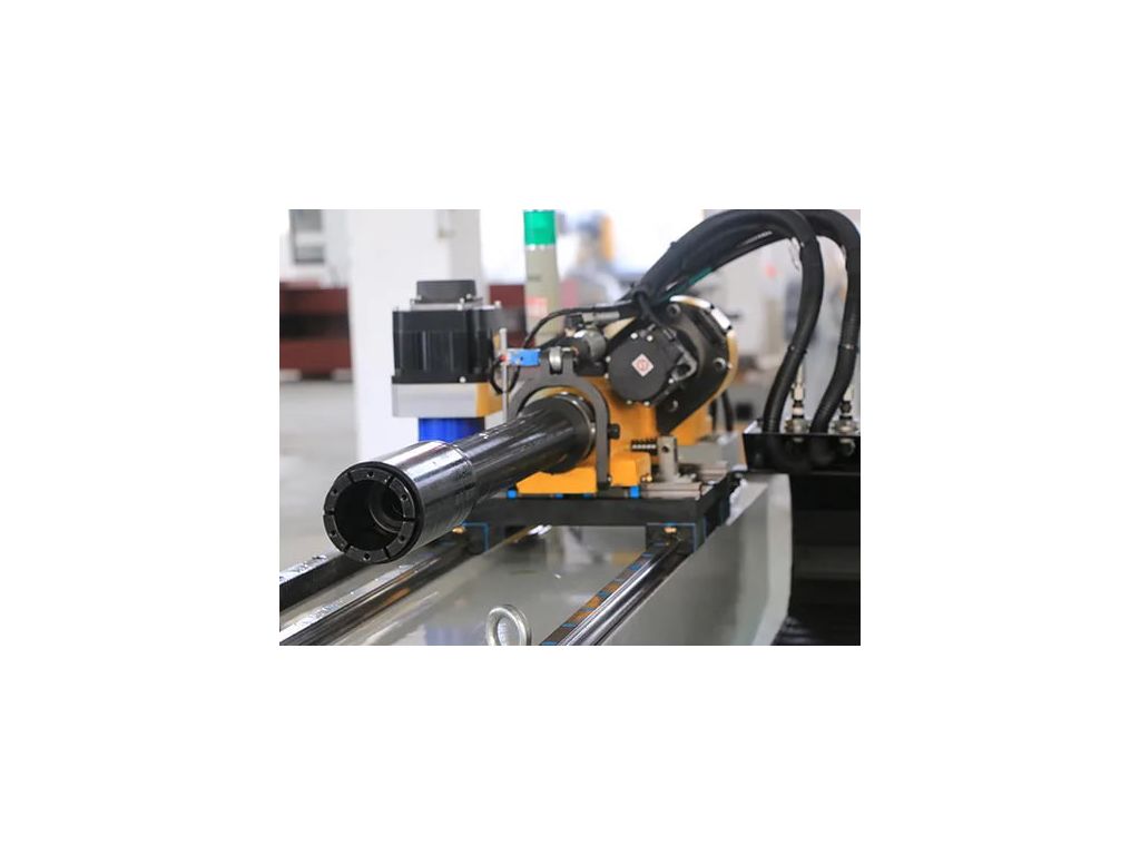 - ЧПУ управление осями: гибка, подача, вращение + функция проталкивания (метод гибки, при котором пресс-форма (гибочный ролик) перемещается на несколько градусов, а затем труба проталкивается через набор роликов для создания изгиба большого радиуса)