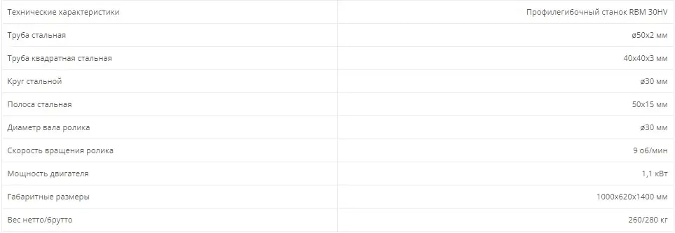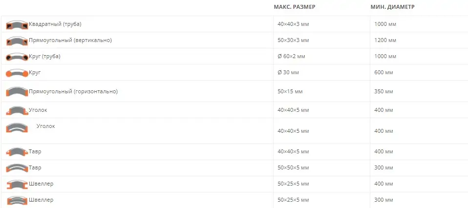 Максимальный размер труб – 50×2 мм/40×40×3 мм.