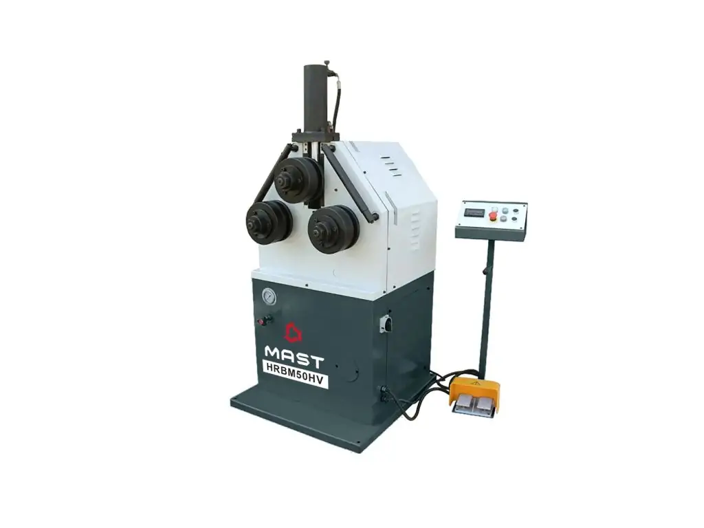 Гидравлический профилегибочный станок MAST HRBM 50HV – это мощный инструмент для гибки металлических труб, полосы, прутка, тавра и швеллера, который является отличным вариантом для крупных производств. Прочная и устойчивая конструкция с двумя нижними приводными валками диаметром 50 мм и твердостью роликов HRC48-52 обеспечивает высокую точность гибки и длительный срок службы. Ролики могут регулироваться по ширине, что позволяет выполнять широкий спектр задач разной сложности. Мощность двигателя – 2,2 кВт.