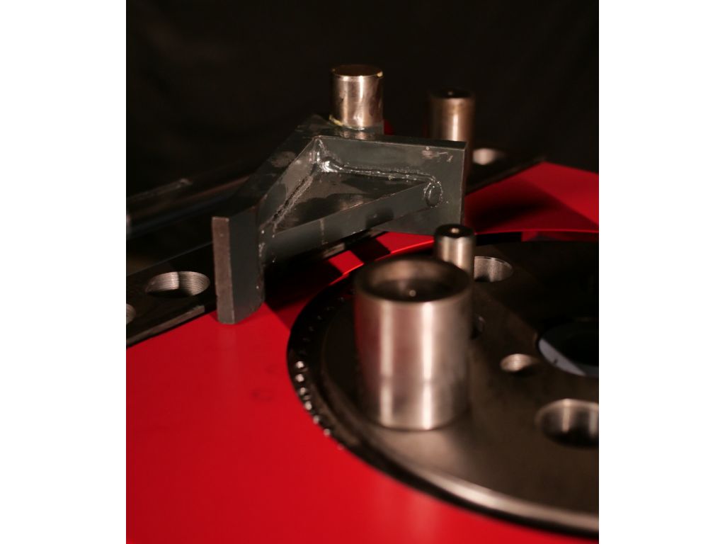 Станок обеспечивает регулировку угла гибки в диапазоне от 0° до 180°, что позволяет производить сложные элементы для строительных конструкций. Возможность сгибать несколько прутков одновременно (при условии, что их суммарный диаметр не превышает 40 мм) позволяет увеличить производительность работы. За счет усиленных рабочих узлов и качественных материалов изготовления этот станок для гибки арматуры будет иметь длительный срок службы даже при интенсивной эксплуатации.
