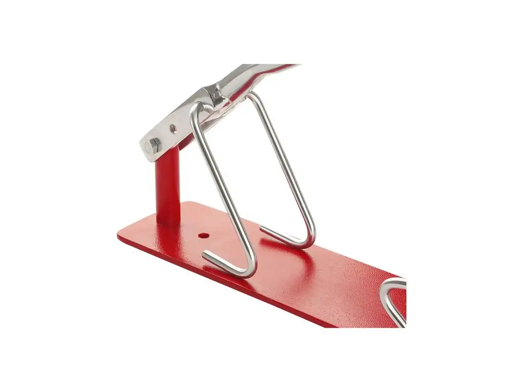 Разведение осуществляется с помощью подвижных лап с крюками, которые вставляются между бортами шины. Благодаря специальной форме лапы не повреждают резину и не создают локальных напряжений. Регулируемый рычажно-шарнирный механизм позволяет задавать точную степень раскрытия шинного борта до 24 см (+/- 2 см) и работать с разными типами шин. Устойчивое основание с монтажными отверстиями обеспечивает жесткое крепление устройства на поверхности. Прочная стальная конструкция с антикоррозионным покрытием делает этот расширитель шин ручной износостойким и долговечным, а небольшой размер и вес позволяют удобно его транспортировать и хранить.