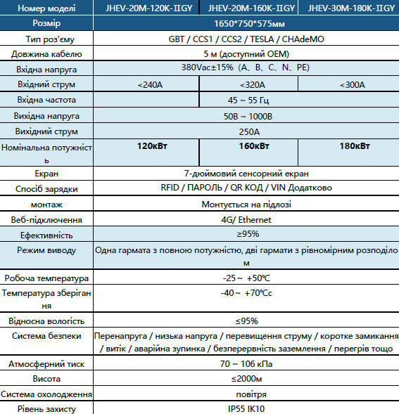 - 7-дюймовый цветной сенсорный экран отображает параметры зарядки: напряжение, ток, время, количество заряда, SOC (состояние заряда) и другую информацию.
