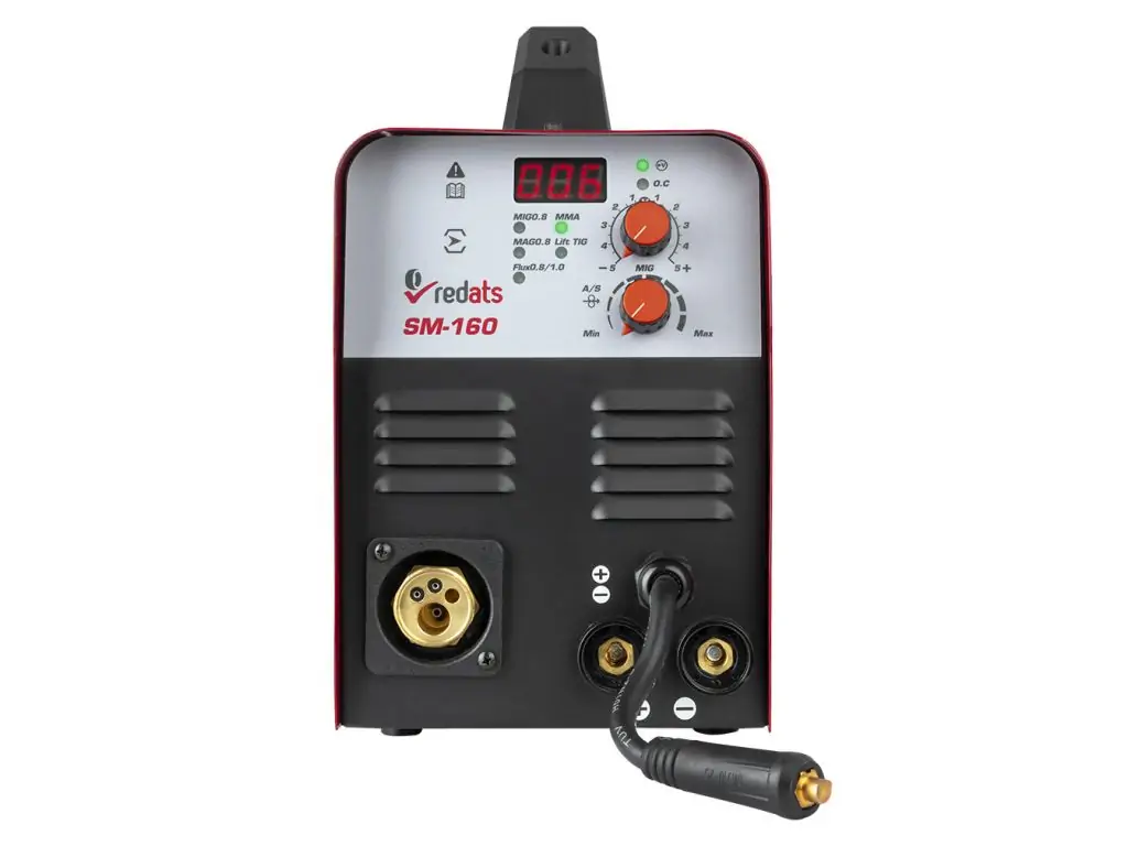 Сварочный аппарат REDATS SM-160 MIG/MAG, Lift TIG, MMA, проволока Flux – это многофункциональное оборудование, поддерживающее 3 метода сварки: MMA (искусственно покрытый электрод), MIG/MAG (в среде защитного газа) и TIG Lift (неплавкий вольфрамовый электрод). Позволяет работать с разными материалами толщиной 1-6 мм. Работает на основе инверторной технологии, обеспечивающей стабильность сварочного тока и сниженное потребление электроэнергии. Питание от сети 230 В.